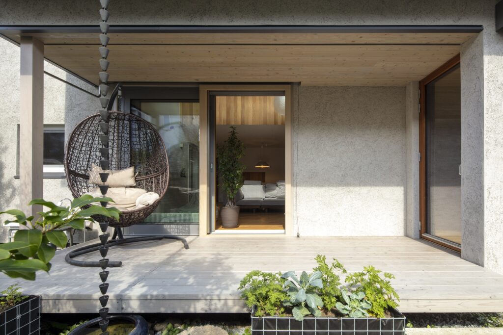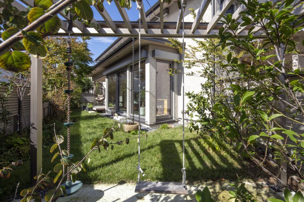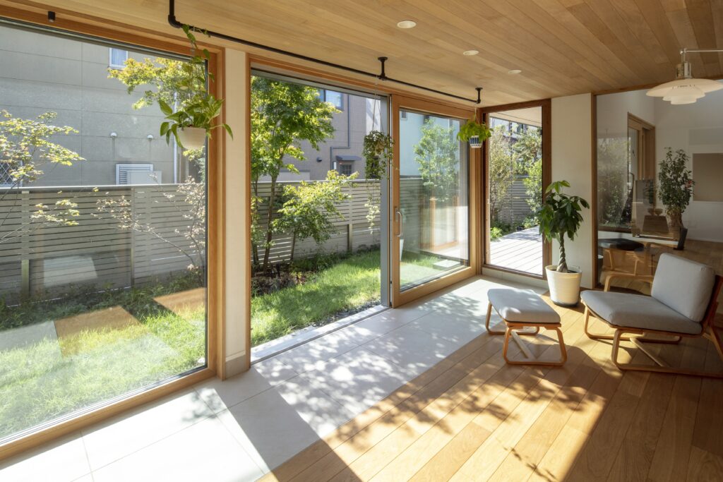 設計を手がけたのは、都内を拠点とする〈パッシブデザインプラス株式会社〉代表取締役の冨田享祐様です。自然の力を活かし、快適な温度・湿度環境をつくる“パッシブデザイン”を、建物単体ではなく、庭や敷地全体と一体で考える統合的な設計を実践されています。