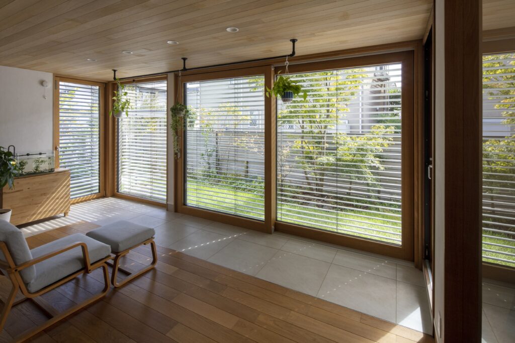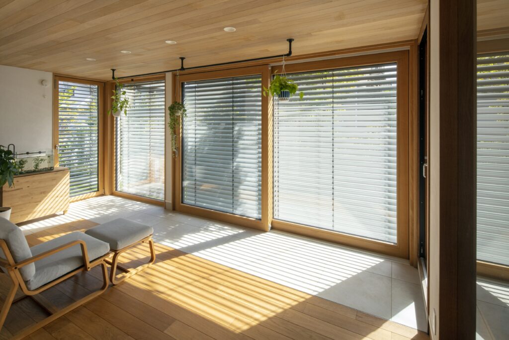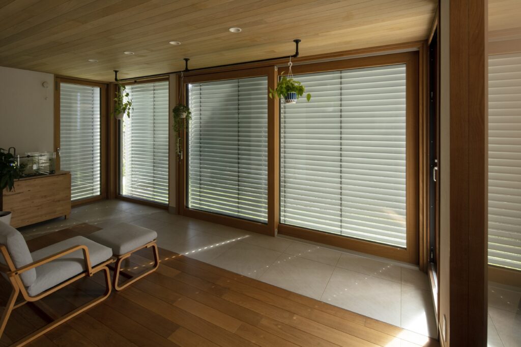 「ユニルクスは日射取得率が高いため、特に夏場はオーバーヒートする可能性があります。でも、カーテンを取り付ける仕様ではないので、日射対策をどうするかは悩みどころでした。その点、外付けブラインドであれば、そうした課題を解消しつつ、視線を遮りながらも外とのつながりを感じられる。価格は上がりますが、それに見合う価値は十分にあると思い、ご提案しました」