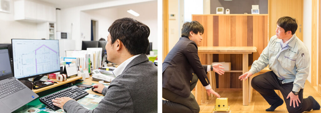 具体的には、許容応力度計算や温熱シミュレーションを自社内で実施するほか、第三者機関と自社による二重の検査体制を整備。さらにオプションでは、建物と地盤の微細な揺れを観測する常時微動探査にも対応するなど、性能を裏付ける取り組みを徹底しています。